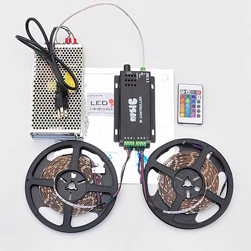 For Sale Ledwholesalers 32.8 ft / 10 M Color Changing Music Control FlexibleLED Strip White Background Kit,2039RGBx2+3320+3219